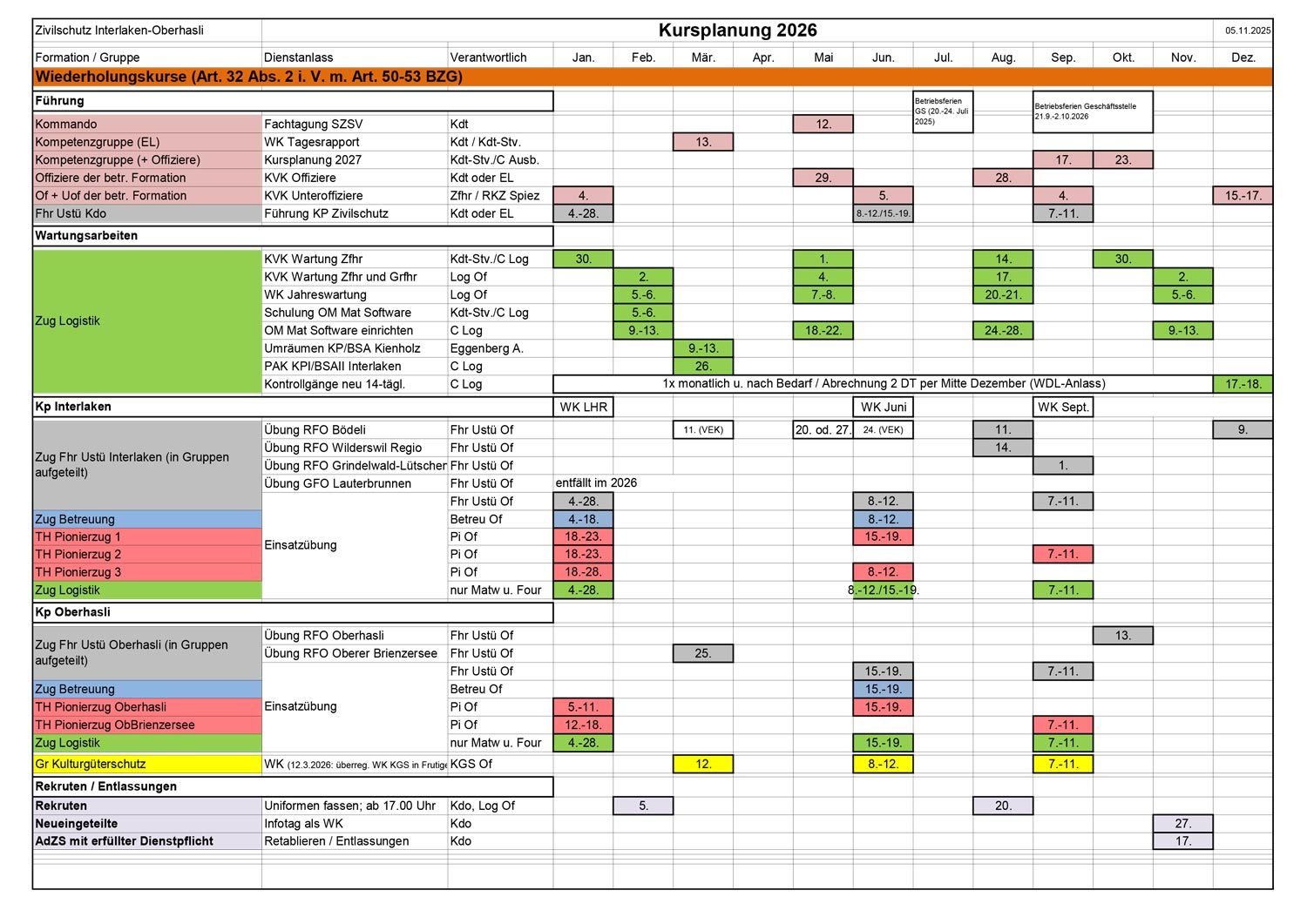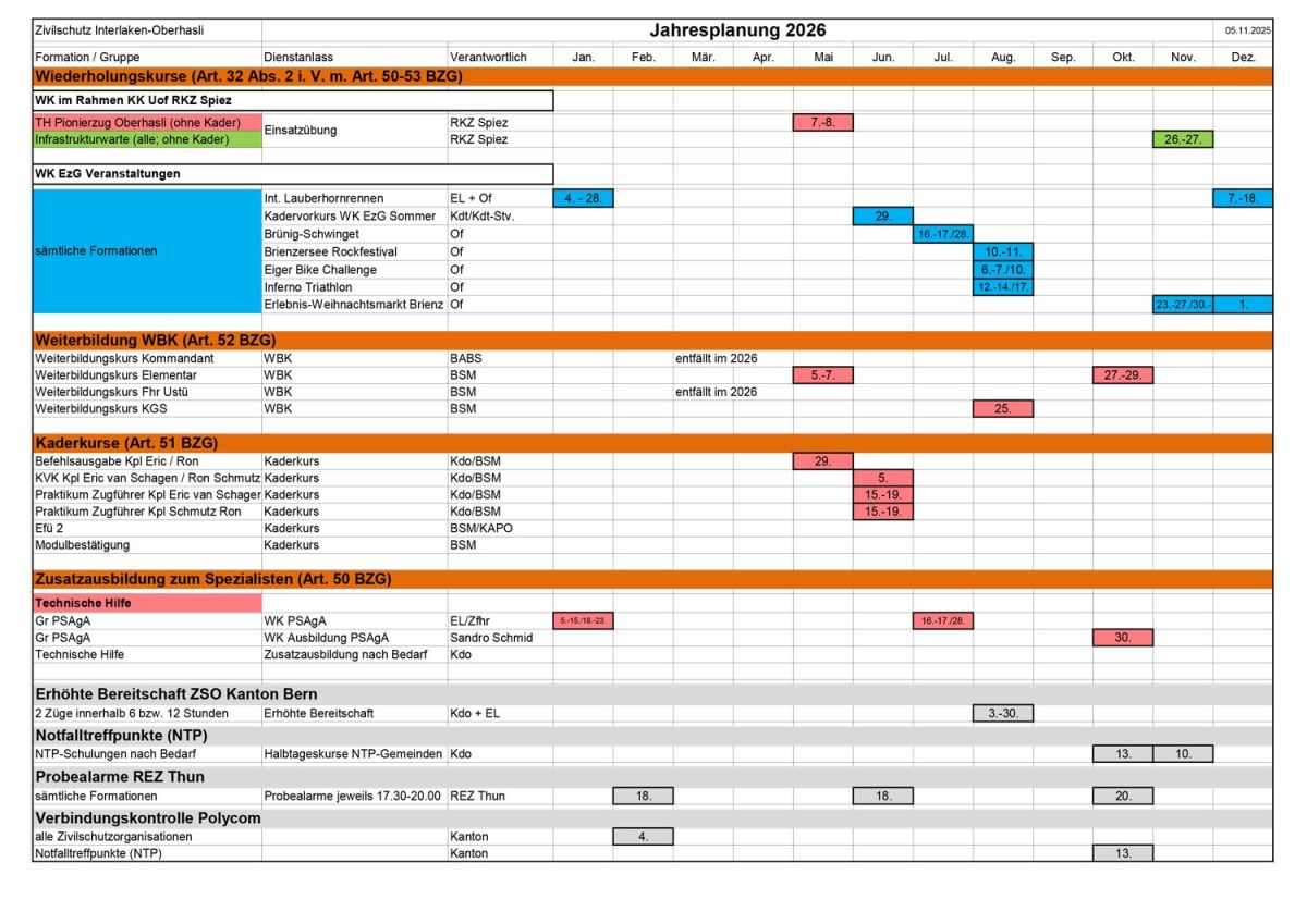 Gesuche für Gemeinschaftseinsätze (nat. WK EzG) sind grundsätzlich anderthalb Jahre vor Beginn des Einsatzes; im Falle von regionalen oder kantonalen WK EzG jedoch spätestens bis zum 1. Oktober des Vorjahres beim Zivilschutz Interlaken-Oberhasli einzureichen. Bitte nehmen Sie frühzeitig vor der Einreichung eines Gesuches mit uns Kontakt auf.